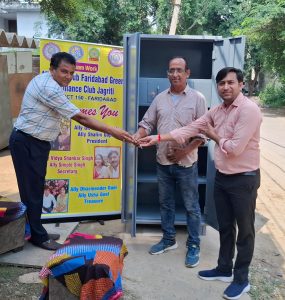 एलायंस क्लब फरीदाबाद ग्रीन डिस्ट्रिक्ट 150 द्वारा वानप्रस्थ वृद्धाश्रम, नचोली को एक अलमारी दान की गई । एलाय रामभगत गर्ग के द्वारा यह अलमारी दान दी गई ।एलाय डॉ. राजेश गुप्ता (अध्यक्ष),एलाय विद्या शंकर सिंह (सचिव),एलाय धर्मेंद्र गोयल (कोषाध्यक्ष) आदि मौजूद थे। राम भगत गर्ग ने इसमें सहयोग प्रदान करने पर आभार व्यक्त करते हुए कहा कि अलायंस क्लब फरीदाबाद द्वारा लगातार सामाजिक कार्य किए जाते हैं, उसी कड़ी में ही आज इस कार्यक्रम का आयोजन किया गया है ।उन्होंने कहा कि इसी प्रकार ही आगे भी सामाजिक कार्य उनकी संस्था के द्वारा किए जाएंगे।